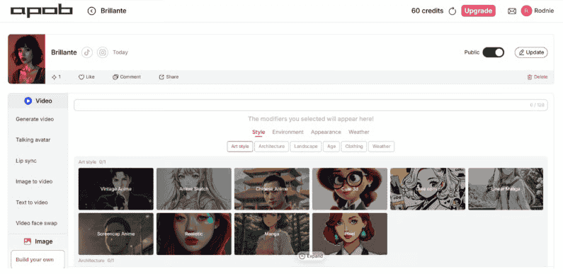 At its core, Apob AI is an AI influencer creation platform. Instead of producing random images like most AI art tools, Apob AI’s main strength is the ability to create your own digital model and reuse it across multiple types of content.